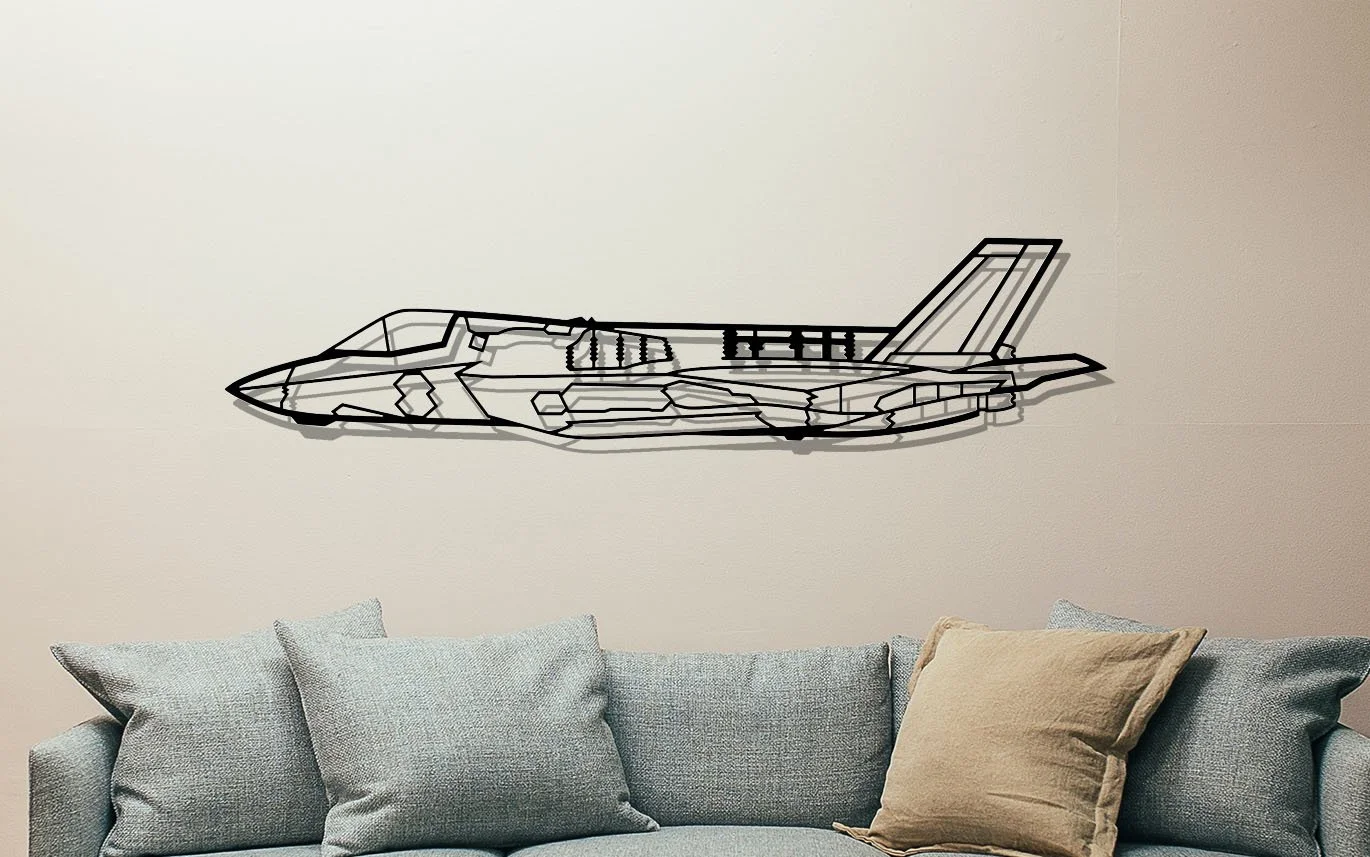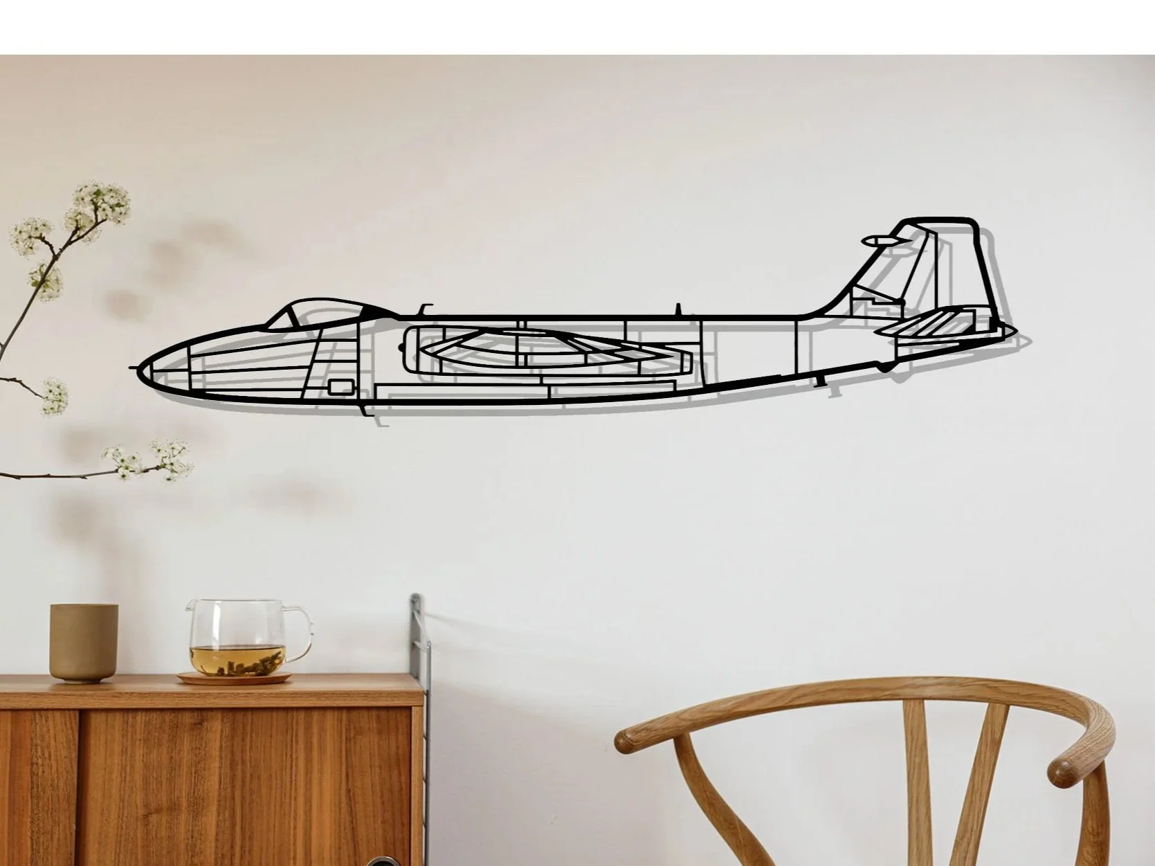 I produce all of our original artwork on a Computer Aided Design (CAD) programme. The drawings produced are then used to laser cut 2mm thick sheet steel into an iconic aircraft profile. This is then cleaned up and prepared for powder coating, where the piece is coated to a satin black finish. The piece is coated all over so you can hang your aircraft inside or out, the powder coating having great rust resistant properties.